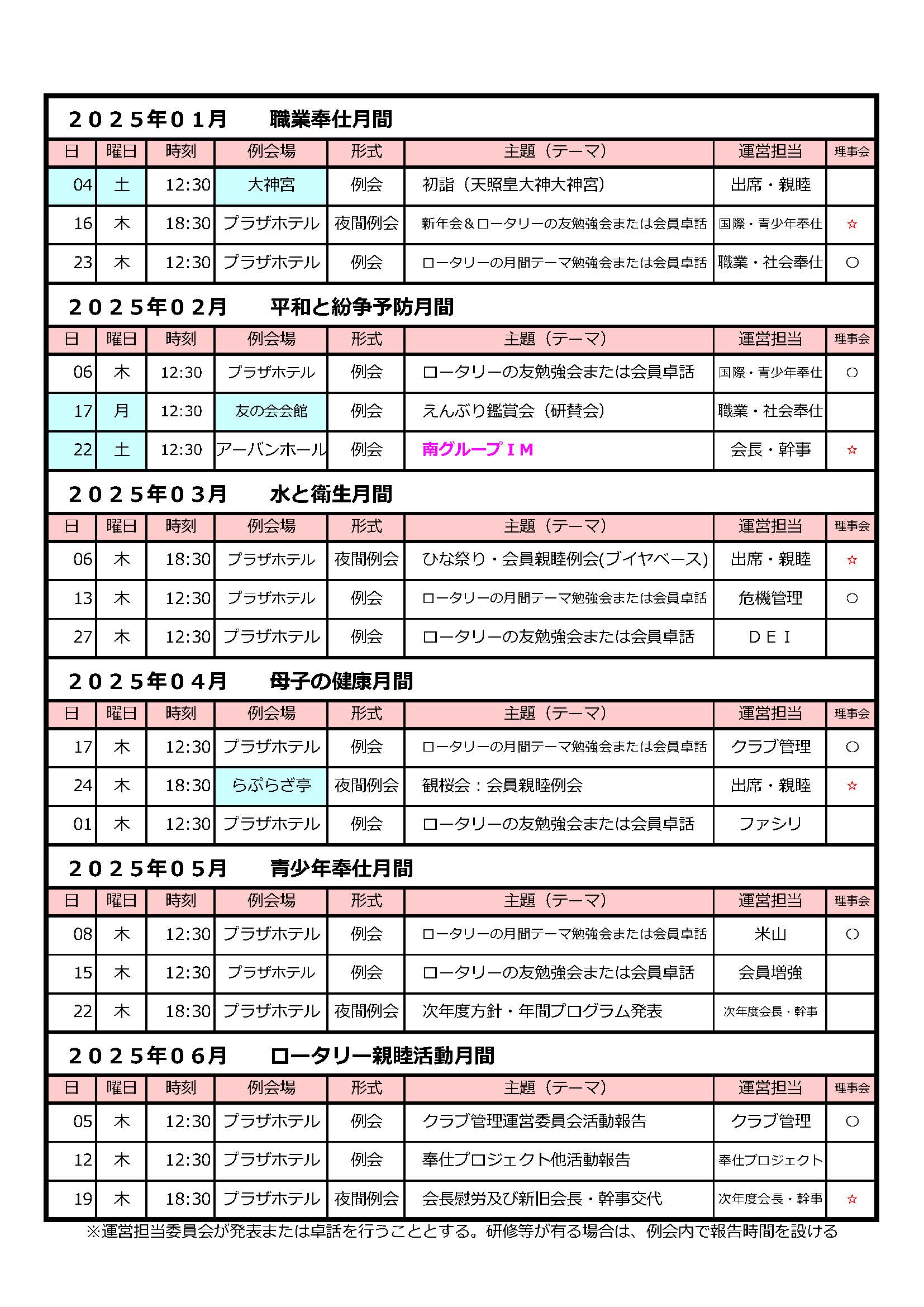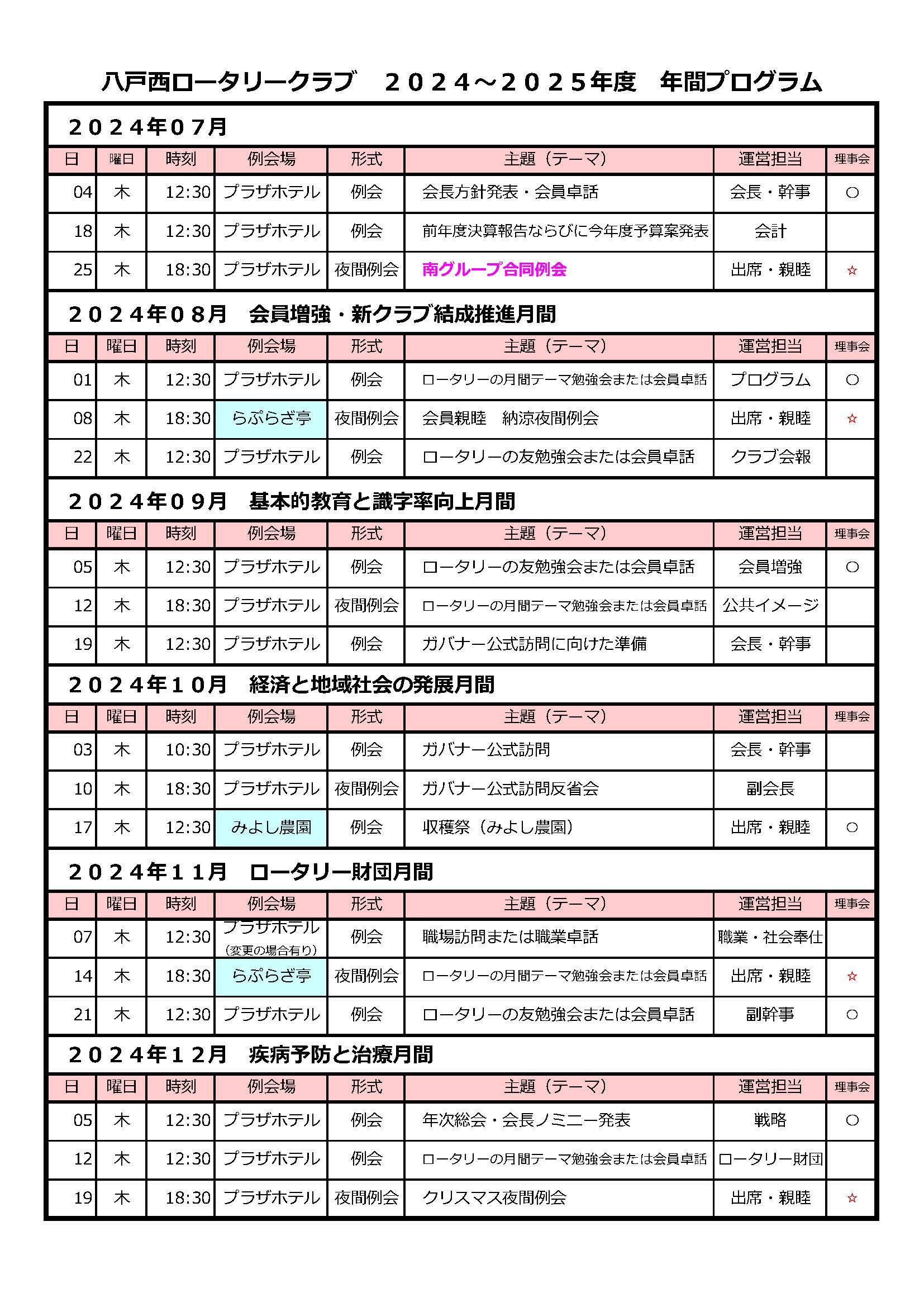 2024~2025年度 行事日程