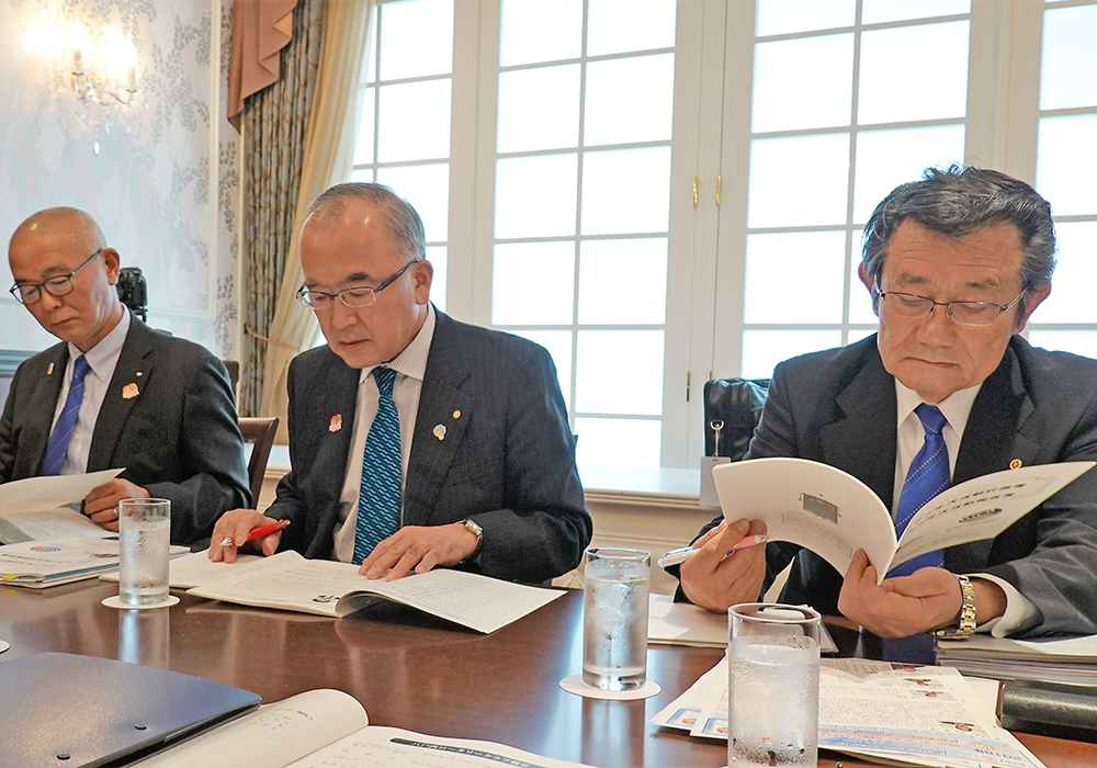 ※写真は左から、島浦会長・久保田ガバナー補佐・今井ガバナー・中田地区幹事・蛇口幹事です