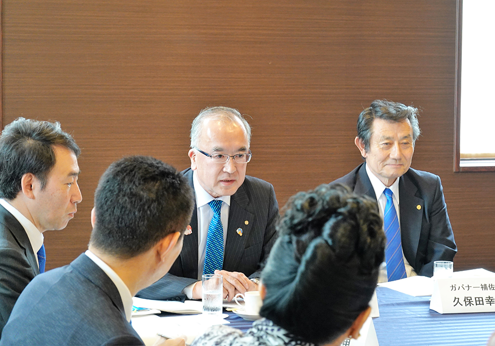 ※写真は上段左から藤野地区幹事長・久保ガバナー補佐・下段左から小林会長・田中ガバナー・畠山幹事です